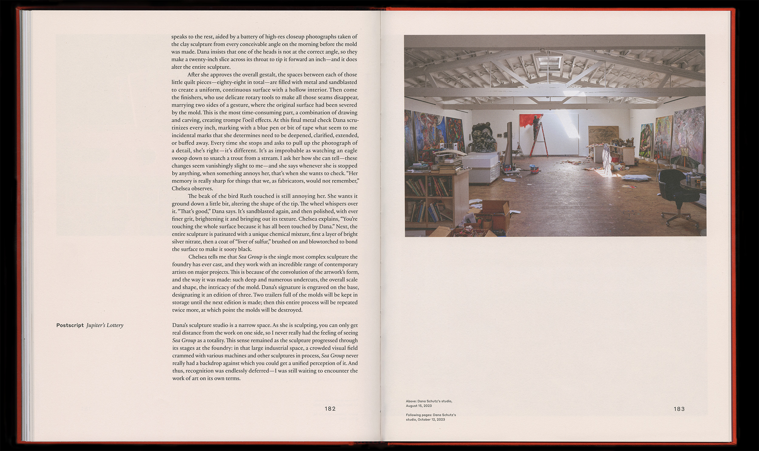 Credits: (Editor) Karen Marta; (Design) Javas Lehn Studio, Javas Lehn, Joseph Margulies, & Scott Massey; (Writers) Jarrett Earnest; (Project editor) Anne Wehr; (Photographer) Jason Schmidt; (Project manager) Luke Chase; (Managing editor) Todd Bradway; (Publisher) David Zwirner Books; (Printer) Trifolio; (Exhibition) Published on the occasion of Schutz’s 2023 exhibition Jupiter’s Lottery at David Zwirner, New York