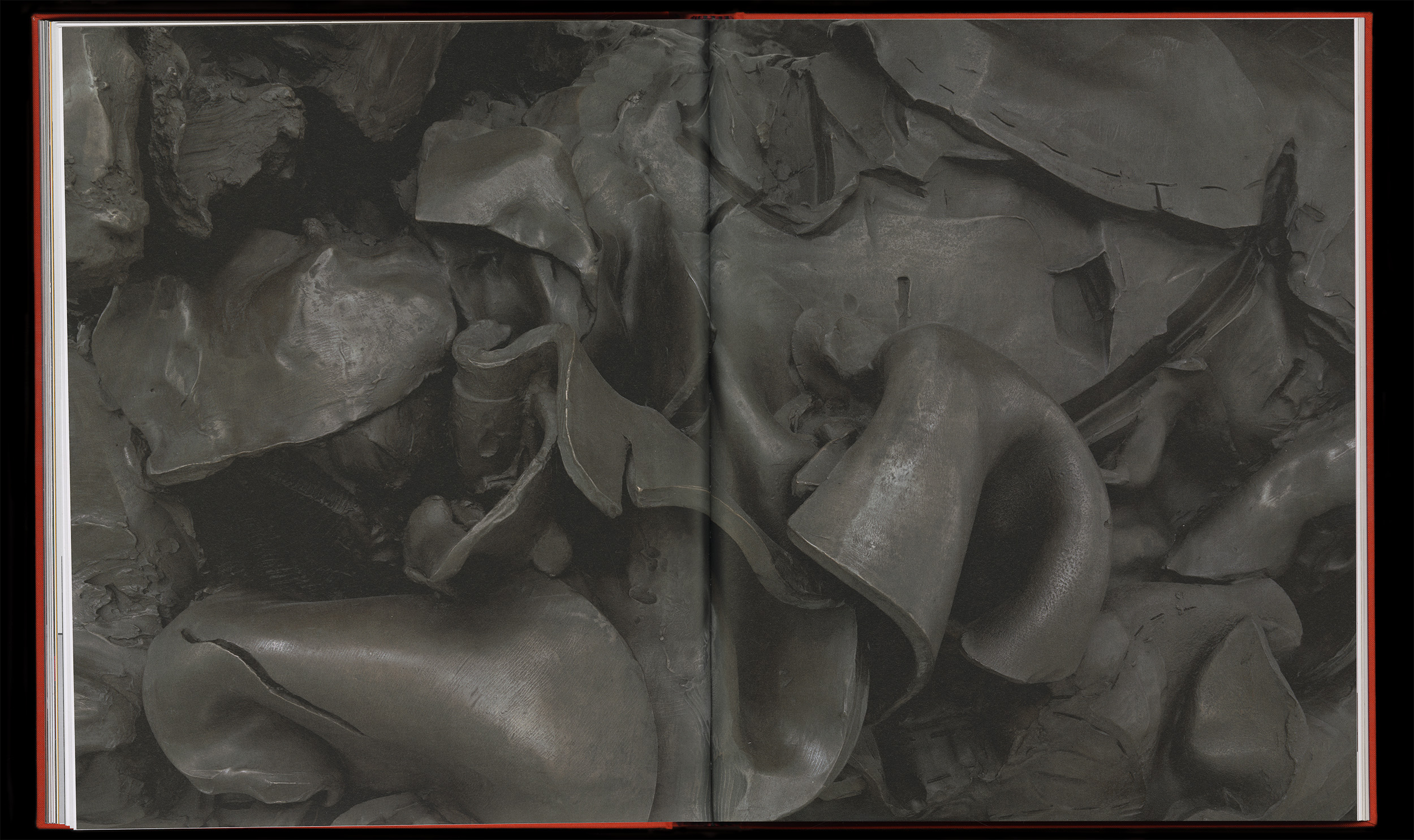 (2) Each section has a tip-in color page inserted into the signature to provide a tactile sensation during each transition, a mix of sensations from rough to sleek. (3) The plates in the Painting section amble size and space to give the reader an appreciation of Dana’s form and color for the series, the details provide a close examination of her fluid and electrifying brushwork. (4) Likewise for the Sculptures we’re provide an expanded view to see the structure and fluid forms cast out of bronze. (5) In Jarrett Earnest’s essay No End In Sight, we are given a behind the scenes encoater of Dana’s thought process and meditations during the run up to her show. Jason Schmidt’s photos place us inside the studio and sometimes intertwined within the sculptures internal structure.